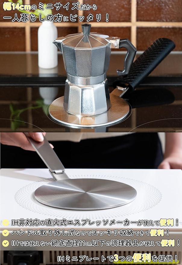 ✅【高品質ステンレス素材】IH用誘導コンバーターは高品質の両面ステンレス鋼で作られているため、長寿命で調理器具をしっかり保護できます。 【直径14cmのミニプレート】幅14cmのミニサイズのインダクションプレートなので一人暮らしの方にも最適。IHクッキングヒーターを使って一人鍋やエスプレッソHOTを楽しむことができます。