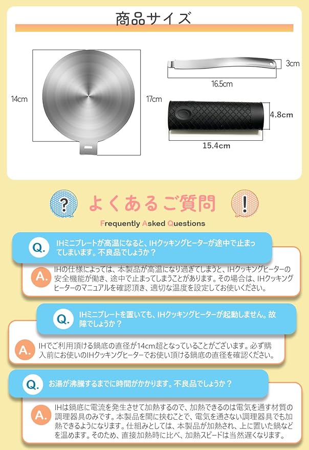 幅14cm IH発熱ミニプレート 耐熱ハンドルカバー付き IH ヒーティング プレート ヒートコンダクター 非IH対応の調理器具をIH対応に変換 Twisty Chronicles