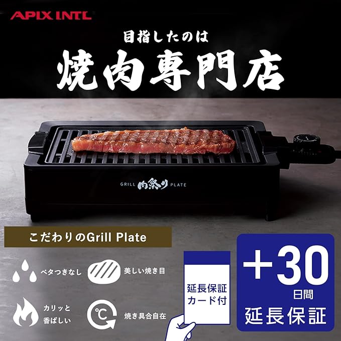 【プラス30日延長保証カード付き】アピックス 焼き肉プレート 煙が出にくい フッ素加工 一人用 焼肉ロースター 減脂 ヘルシー グリル 一人焼肉 肉祭り