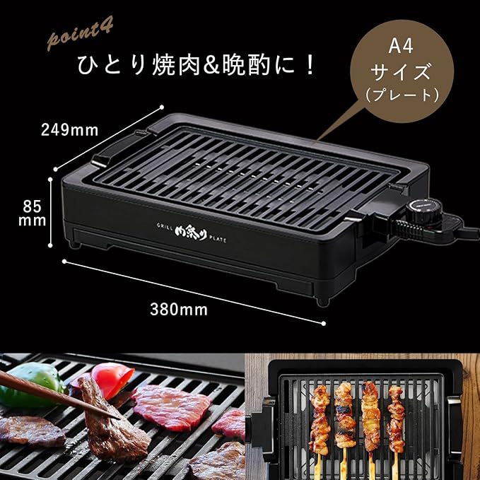 プレートは約A4サイズとお一人様から2人で楽しめる大きさです。プレートと油受けトレイは着脱可能なため、洗いやすいです。
