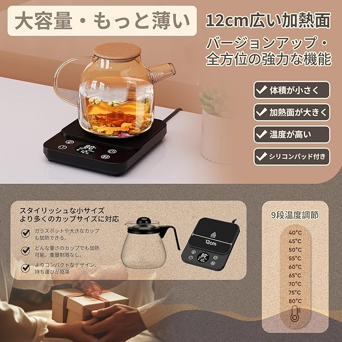 第二世代 カップウォーマー コーヒー保温コースター【9段温度設定】保温 マグカップウォーマー 加熱コースター コーヒー/お茶/水/牛乳など飲み物 静音 自動電源オフ コップ保温 家庭/オフィスの必需品 秋冬 親友プレゼント ドリンクウォーマー コーヒーウォーマー
