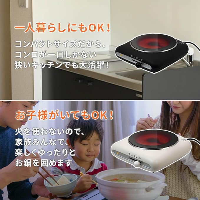 東京Deco 1口 卓上クッキングヒーター 1000W 電気 コンロ コンパクト 15~19cm対応 ブラック [1000Wの高火力 / 無段階火力調整/セラミックヒーター] 卓上 おしゃれ マット塗装 高火力 保温タイマー IH 調理器 一人鍋 コンロ 鍋 新生活 単身 デザイン ポータブル おしゃれ i001