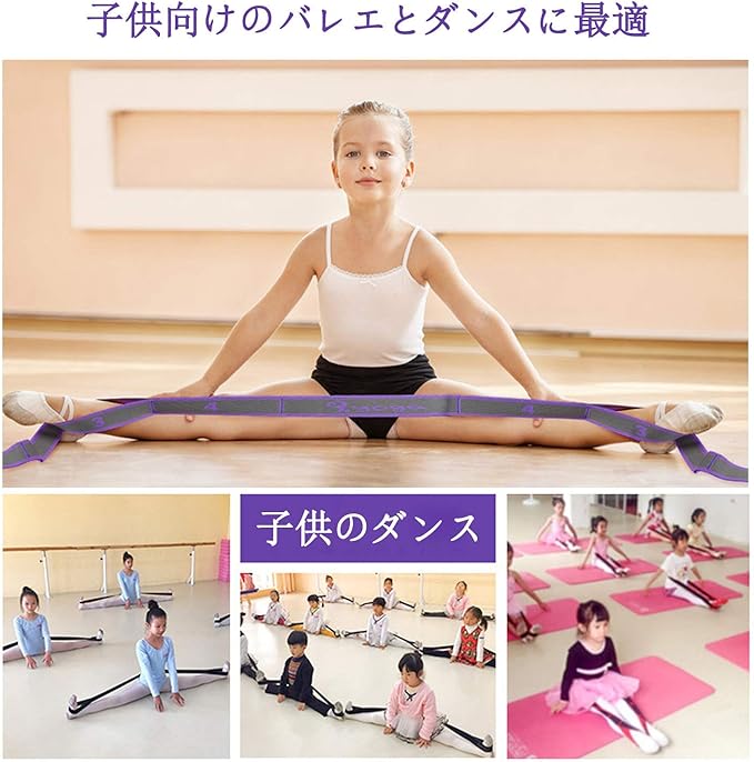Naiccy バレエ ストレッチバンド ヨガストレッチストラップ 開脚ストレッチバンド 腰のストレッチバンド 9段階の強度,ヨガ/ダンス/体操/バレエ/テコンドーなど器具 ヨガストレッチ用 子供向け 柔軟運動 トレーニング 子ども開脚ストレッチバンド 調整可能