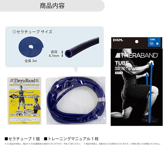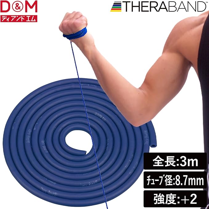 セラバンド トレーニングチューブ トレーニングバンド 切って使える 3m マニュアル付 レジスタンスバンド フィットネスチューブ ストレッチバンド 筋トレ 耐久性 D&M ディーアンドエム Theraband セラチューブ