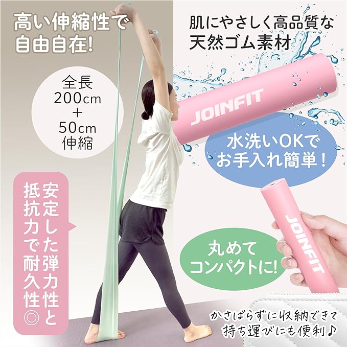 ストレッチバンド 2m【JOINFIT】 トレーニングチューブ フレックスバンド ピラティスバンド ヨガ 体幹を引き締める インナーマッスルを鍛える 自宅でエクササイズに最適 猫背 二の腕 胸 肩甲骨 太もも 腹筋 筋トレ ダイエット ストレッチ シェイプアップ