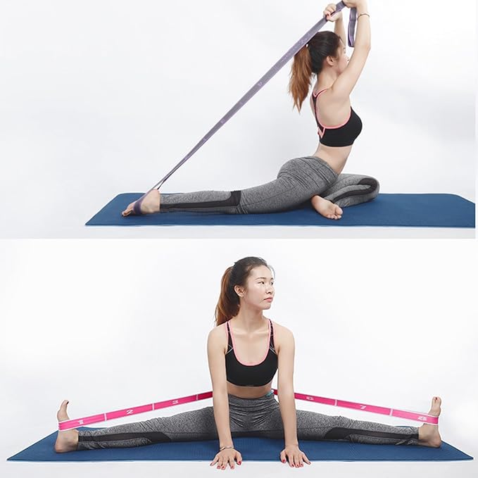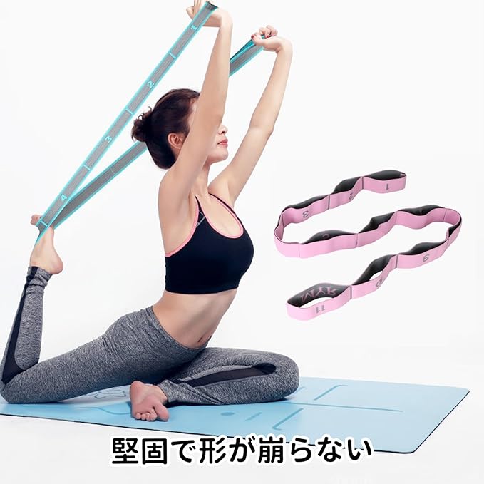 【手軽使用】135cm 長い11独立したストレッチループでは、個々の番号付きループは、ストレッチの進行状況を確認するのに役立ちます。バックルの革紐とは対照的に、異なった伸張のためのヨガの革紐を停止し、調節する必要がない。初心者の方や、今までできなかったポーズに挑戦したい方におススメ!