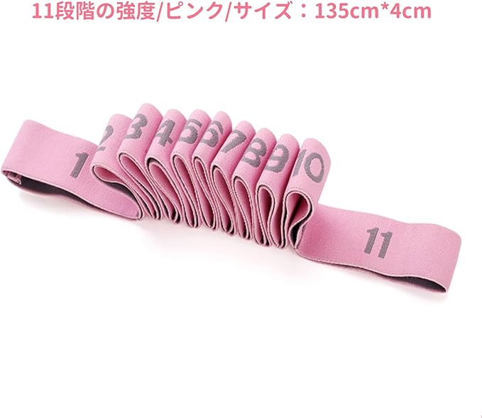 【11つの強度設計】サイズ:長さ135cm、幅4cm、11段階の強度、男女共通のストレッチベルト。素材:頑丈さと耐久性を兼ねたナイロン +ラテックスを採用し、お肌に優しく摩擦熱を最小限に抑えます。