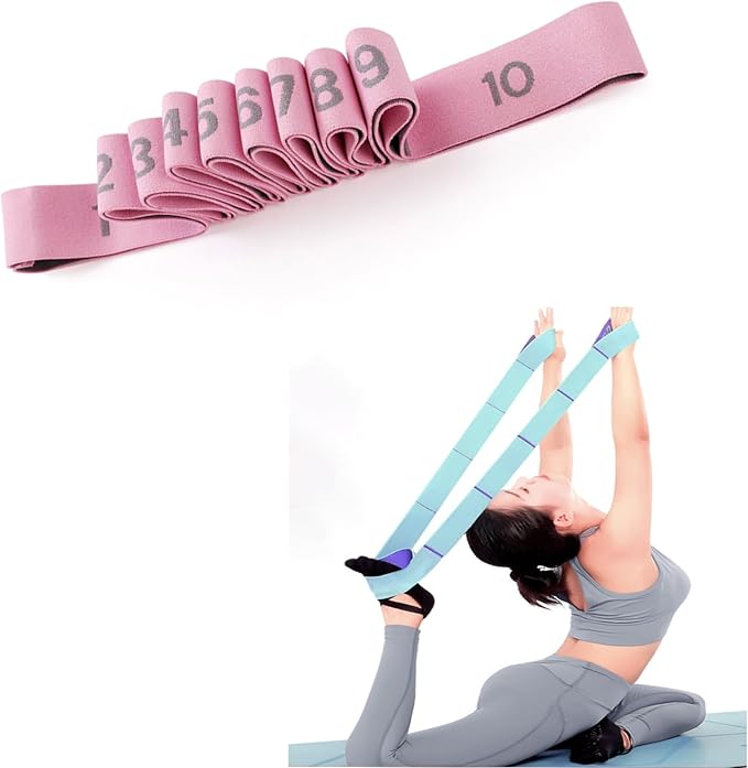 【手軽使用】125cm 長い10独立したストレッチループでは、個々の番号付きループは、ストレッチの進行状況を確認するのに役立ちます。バックルの革紐とは対照的に、異なった伸張のためのヨガの革紐を停止し、調節する必要がない。初心者の方や、今までできなかったポーズに挑戦したい方におススメ!