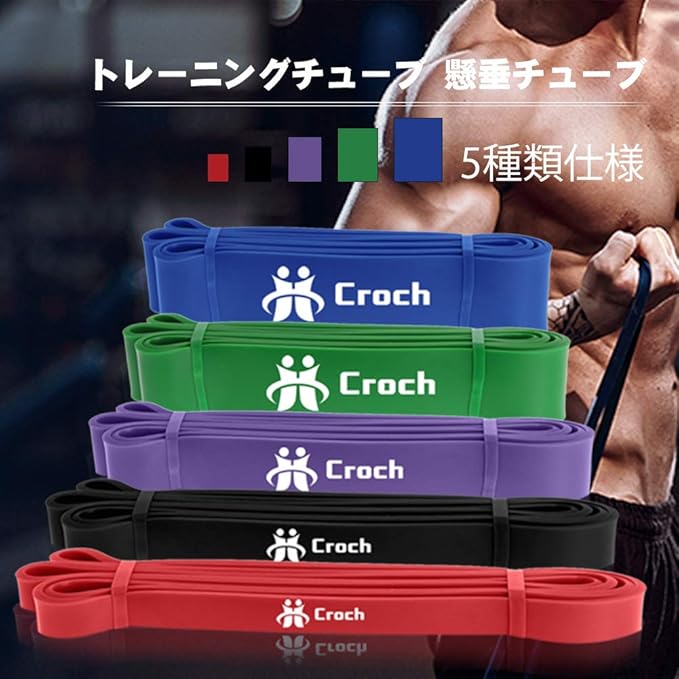 Croch トレーニングチューブ 懸垂チューブ フィットネスチューブ ゴムチューブ ストレッチ 筋トレ エクササイズバンド 高強度 丈夫 懸垂補助 チューブ トレーニング ヨガ 男女兼用 NT40092