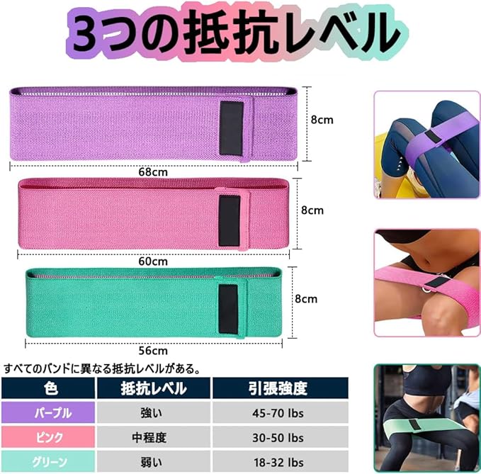 ヒップバンド 3本セット 美尻バンド 高耐久 トレーニングチューブ ストレッチ 内転筋 ストレッチチューブ レジスタンスバンド 尻トレーニング器具 美尻トレ用 トレーニング器具 エクササイズ 筋トレ 軽量 太もも 美尻 美脚 フィットネス 男女兼用 緑、紫、ピンク