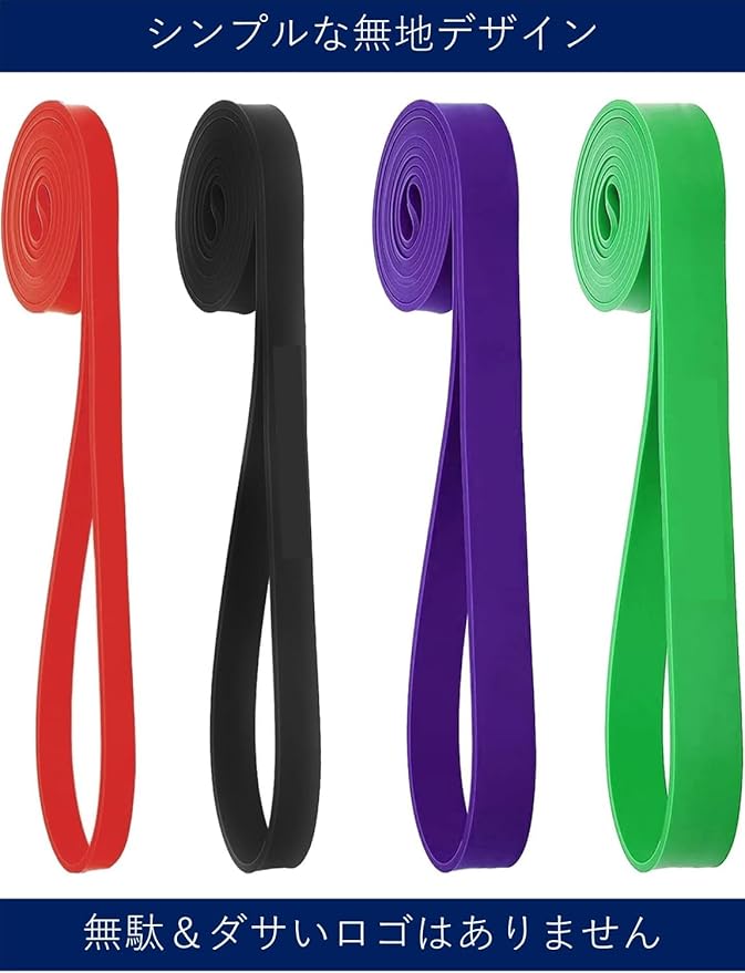(弱)赤→黒→紫→緑(強)の4色をご用意。色で強度を区別できます。ご自身のレベルに合わせて、使い分けることでトレーニングの効果を一層高めることができます。