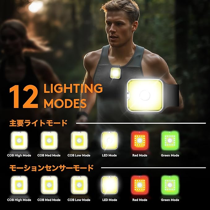 充電式 LEDライト 高輝度 センサー付き 急速充電器対応 ランニング ウォーキング キャンプ マグネット式 6種類のライト 防水 アウトドア