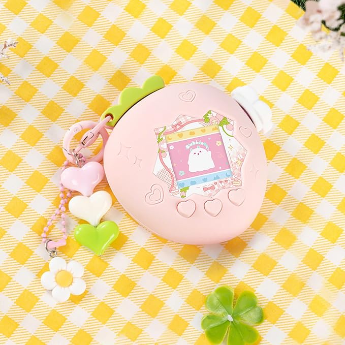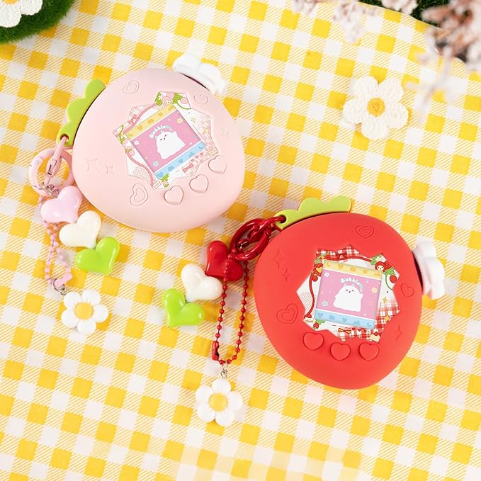 たまごっちパラダイス ケース(Tamagotchi Paradise 用) シリコーン保護カバー ズームダイヤルカバ一&チャーム&フェイスプレート付き かわいいスキン 柔らかい 子供向き 落下防止 キズ防止 完全な保護 防塵 いちごランドド (ピンク)