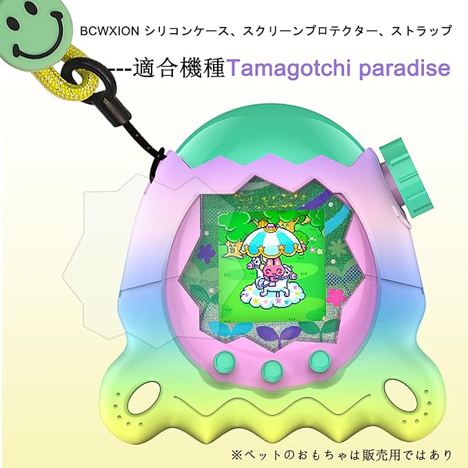 BCWXIONシリコン保護シェルはTamagotchi Paradise(エッグパーティー)に適している スクリーン保護フィルム、ストラップ付き、底は立つことができます、耐衝撃、防塵、全面保護ケース(虹色)