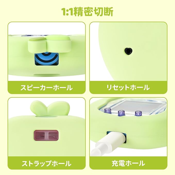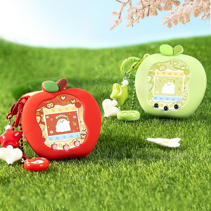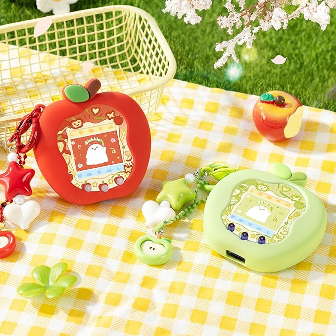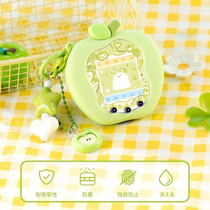 たまごっち uni カバー 柔らかい保護ケース チャーム&フェイスプレート付き シリコン製 かわいいスキン 落下防止 衝撃吸収 装着充電可能 Tamagotchi Uni 対応 りんごランド(みどり)