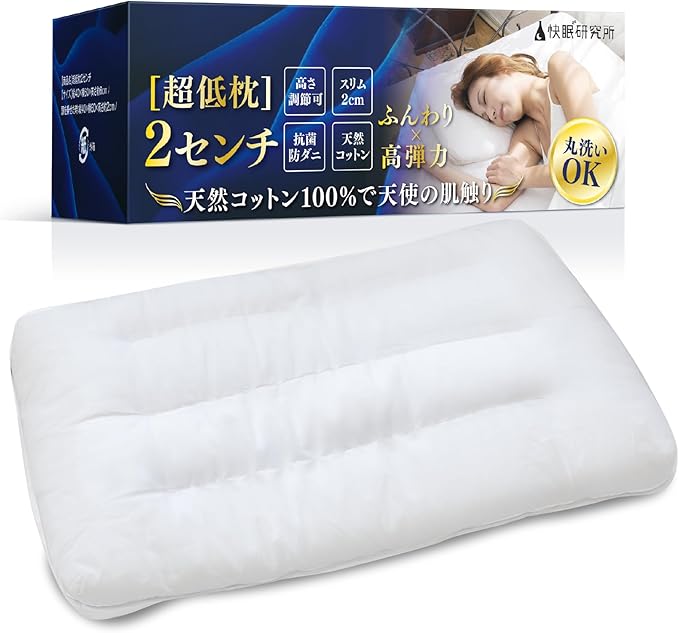 快眠研究所【理学療法士監修】超スリム2cm 睡眠まくら 首や肩の負担を減らす 枕 低め 低い枕 薄い枕 薄い 洗える 柔らかい枕 通気性 高さ調整 天然コットン (40 60cm/超スリム2cm)