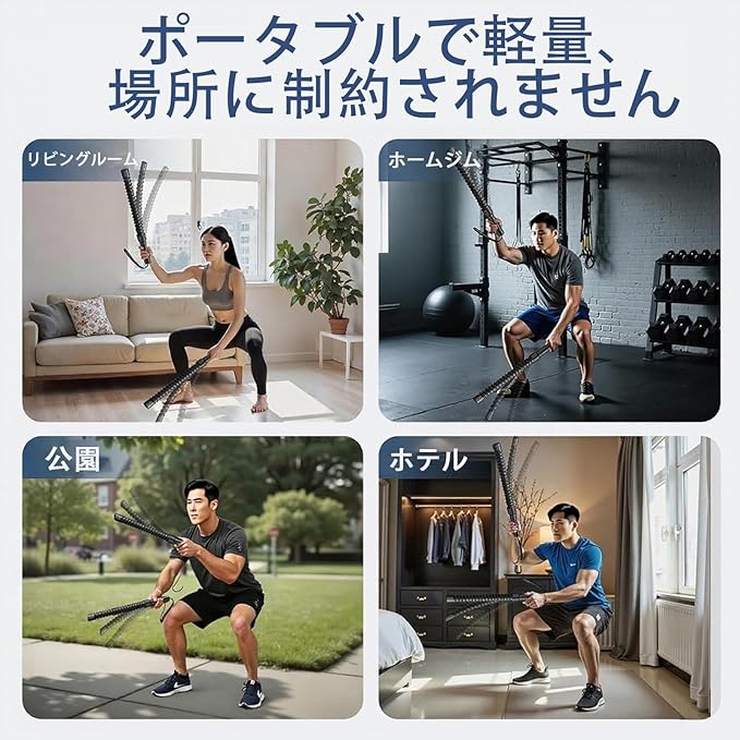 ✔️【革新設計コードレスバトルロープ】この革新的なコードレスバトルロープは、従来のロープトレーニングの動きを再現しつつ、ロープの絡まりや床への騒音といった煩わしさを解消しました。初心者の方でも簡単に使いこなせる設計です。当社のホームフィットネスロープは、弾性スプリングを採用し、毎日のエクササイズを最大限に活用できるよう設計されています。コンパクトな50cmサイズながら、本格的なロープウェーブ運動を可能にし、マンションやホテル、小さなホームジムでも周囲に気兼ねなくトレーニングできます。静粛が求められる空間にも最適です。