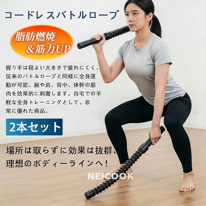 【筋肥大に最適!】バトルロープ ロープレスバトルロープ 自宅用 バトルロープ コードレス 携帯型 トレーニングロープ 筋トレグッズ 強力 高効率 フィットネス器具 ホームジム 筋肉の構築エクササイズコードトレ 2個