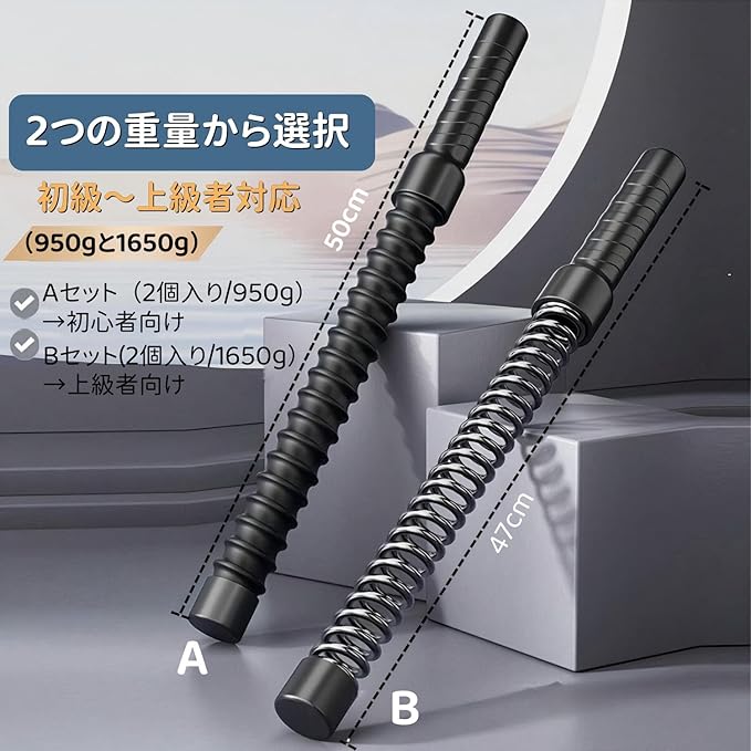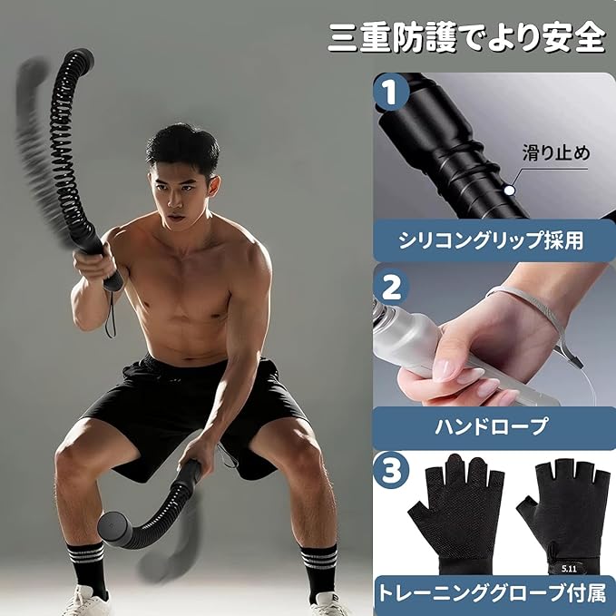 【滑り止めグリップ&初心者にも安心】ハンドル部分は凹凸加工されたシリコン素材を採用。汗をかいてもしっかりグリップ可能。さらにリストストラップ付きで、手首に固定すれば誤って落とす心配もなく、自宅トレーニング時の安全性を向上させます。
