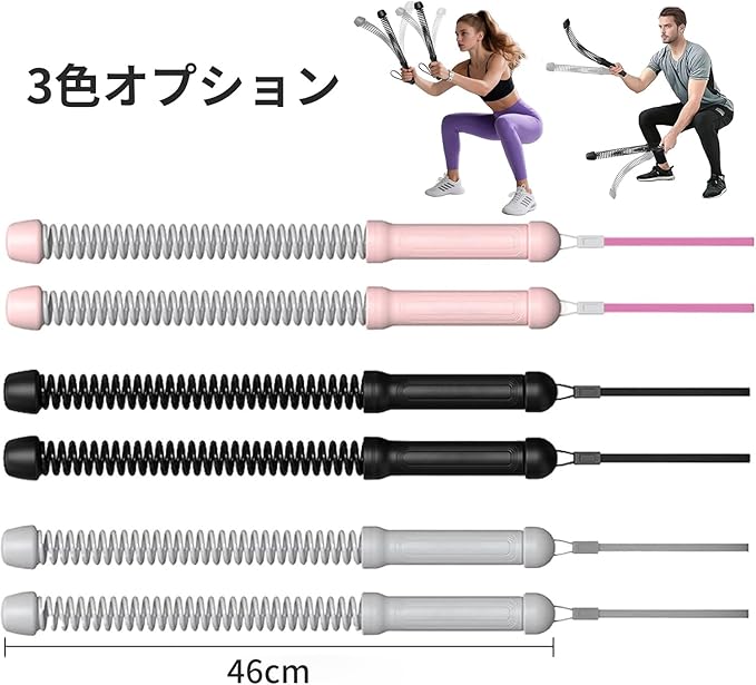バトルロープ ロープレスバトルロープ 全長約46cm 2個 筋トレグッズ フィットネス器具 携帯型 トレーニングロープ ファインスチール材質 耐久性 自宅用 ホームジム 男女兼用 (ブラック)