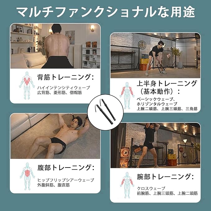 【フィットネスツール】このバトルロープは、筋力トレーニング、筋肉増強、格闘技など、様々なワークアウトに最適で、ダイナミックな動きを通してフィットネス効果を高めます。