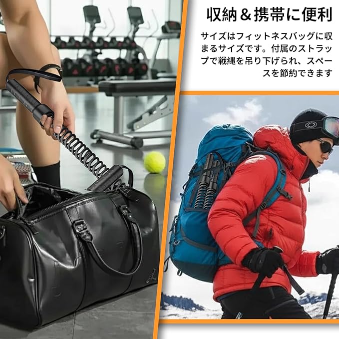 【柔軟な使用方法】取り付け不要で、いつでもどこでもトレーニングが可能です。伝統的なバトルロープのような複雑な取り付けや固定が不要です。この多機能ロープは初心者から上級者まで対応し、異なる目標に応じて使用方法を柔軟に切り替え可能です。自宅でもプロフェッショナルレベルの全身運動が可能です。フィットネス愛好家が自宅やアウトドア活動時にトレーニングを行う際の理想的な選択です!