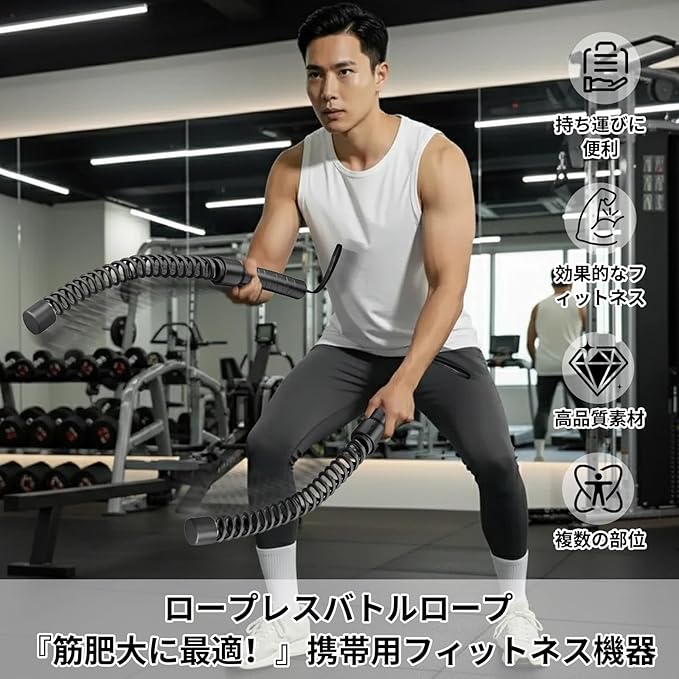 Mosasa バトルロープ ロープレスバトルロープ 自宅用 筋トレグッズ トレーニング 筋トレ フィットネス器具 ワークアウト用 トレーニング用 ホームジム