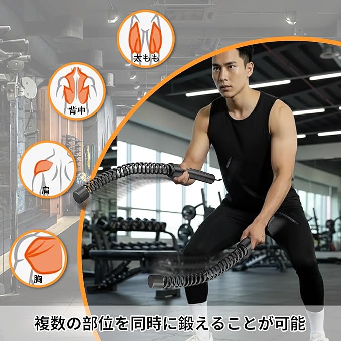 【高耐久構造】このフィットネスロープは高品質の鋼製素材を使用し、頑丈で耐久性があります。握力を強化する収縮管ハンドルを装備しています。内部にはステンレススプリングを採用し、変形しにくく、高強度使用に耐えます。表面は耐摩耗処理を施し、擦り傷や剥がれに強く、長期にわたって美観を保ちます。取り外し可能なシリコン製ヘッドデザインで、家具や壁を傷つけません。