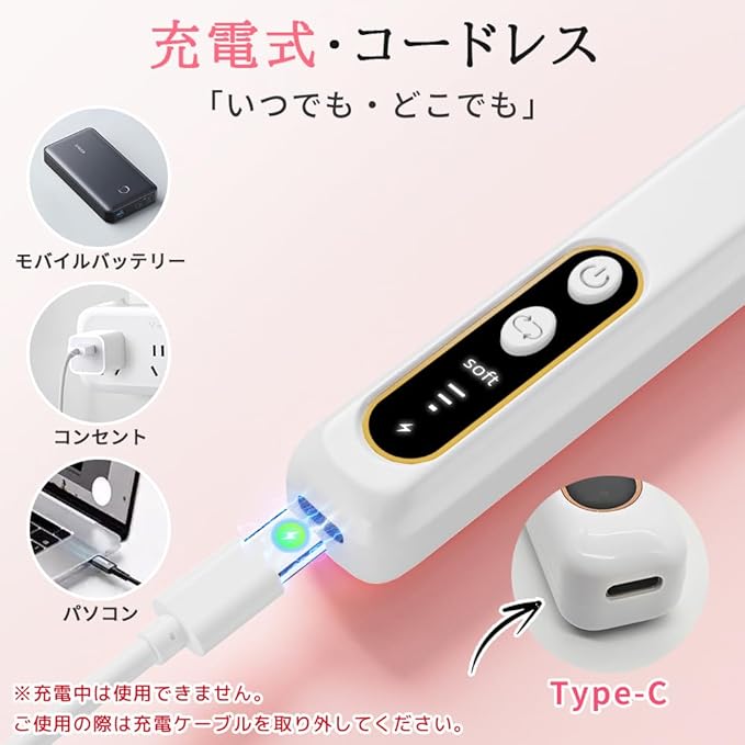 「USB充電式 & コンパクトで使いやすい!」:ネイルオフマシーンは電源に差し込む必要はありません、1時間充電すると、120分間連続使用できます。もちろん、電源を接続しながら使用することもできます。家庭用にも業務用にも最適です。コンパクトなサイズで外出、旅行や出張の持ち運びに便利!