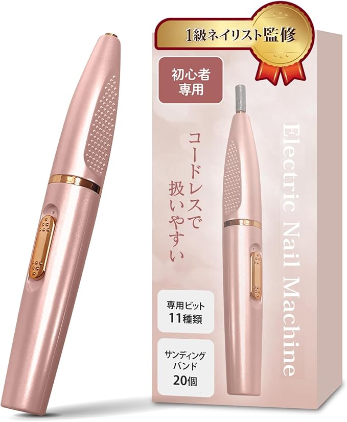 【1級ネイリスト監修】 ネイルマシン 電動 【ほの艶】 初心者専用 (全32点セット)「18000rpm回転/ジェルオフにも十分なパワー」 (ピンク)