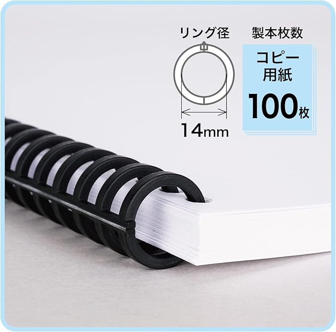 【綴じ枚数】100枚【リング径】14mm【リングの間隔】9.5mm【リングの太さ】3mm