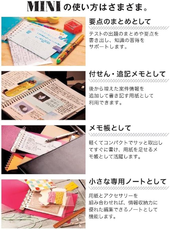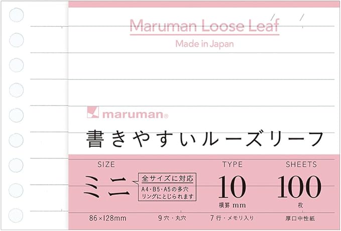 ルーズリーフミニ(9穴 A4、B5、A5の多穴バインダーの全てに対応)