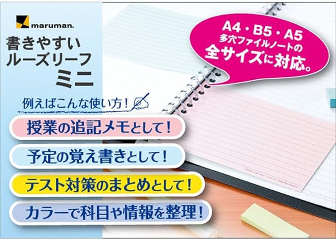 ルーズリーフミニはメモとして、ふせんの代わりとして幅広い用途で使えます。