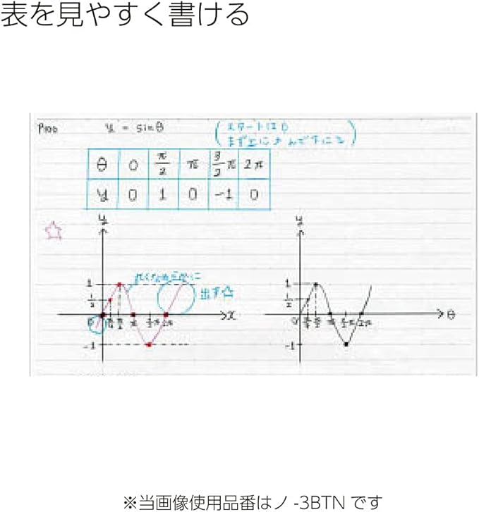 「美しく書く」をサポートするドット入り罫線/罫線上に等間隔に並んだドットを活用することで、ノートを美しく書くことができ、書いた後見返しやすく、効率的に学習することができます。