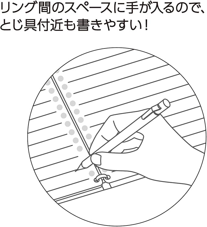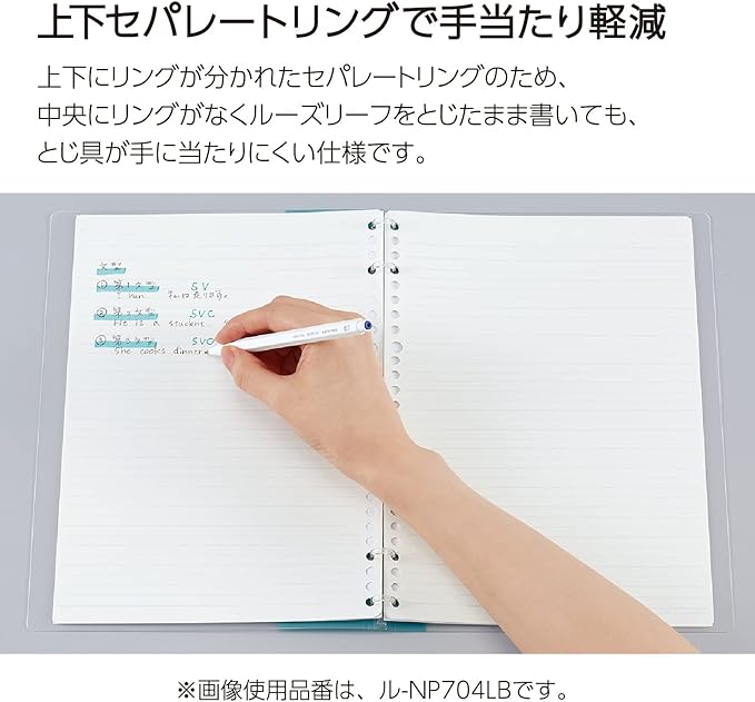 ・ルーズリーフを綴じたまま書いても綴じ具が手に当たりにくい2X2リング。