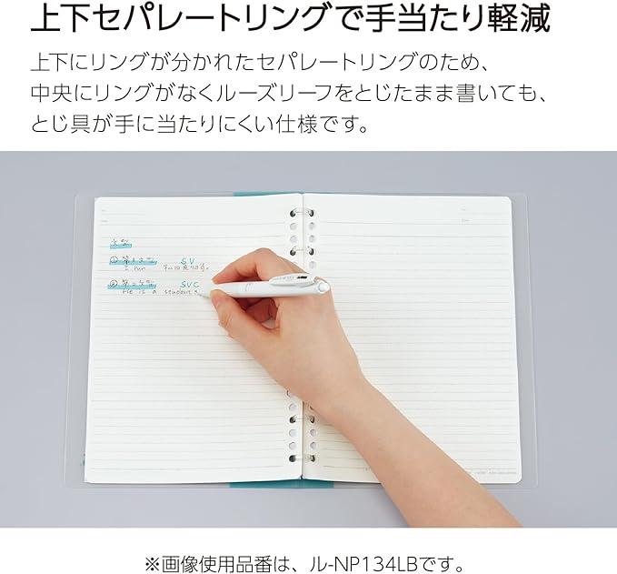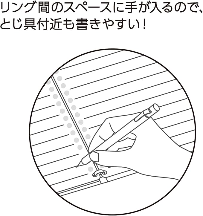 ・ルーズリーフを綴じたまま書いても綴じ具が手に当たりにくい2 2リング