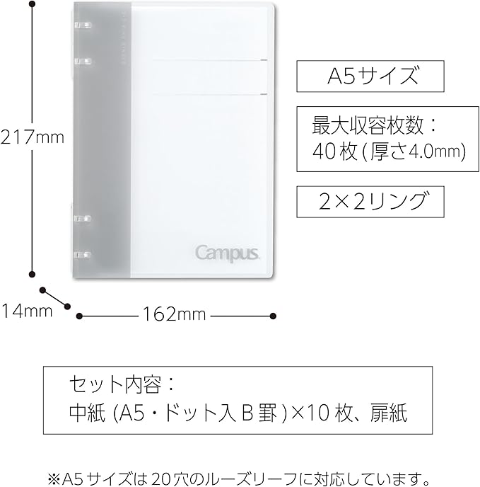 ・A5サイズ(20穴)のルーズリーフに対応しています。