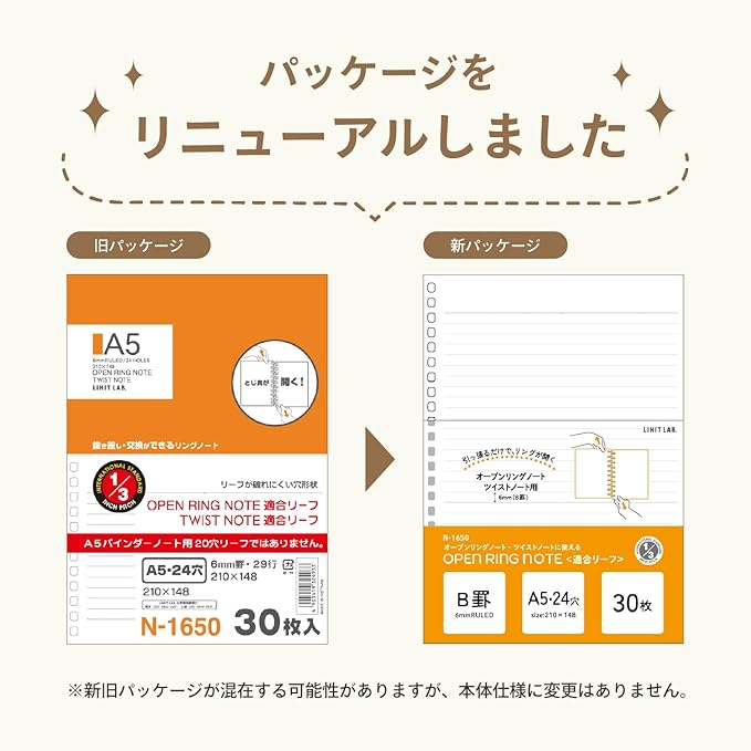 リヒトラブ ツイストノート用 ルーズリーフ A5 24穴 B罫 30枚入 N1650