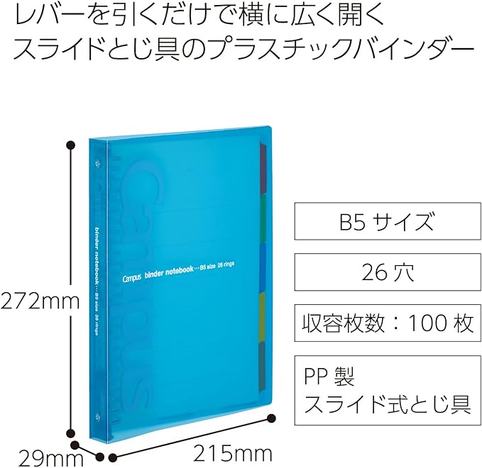 コクヨ(KOKUYO) ルーズリーフ バインダー キャンパス B5 26穴 最大100枚 青 スライド ル-P333NB