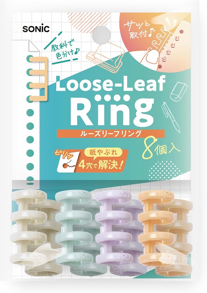 ソニック リング ルーズリーフリング 4穴式 8個入 SP-8763