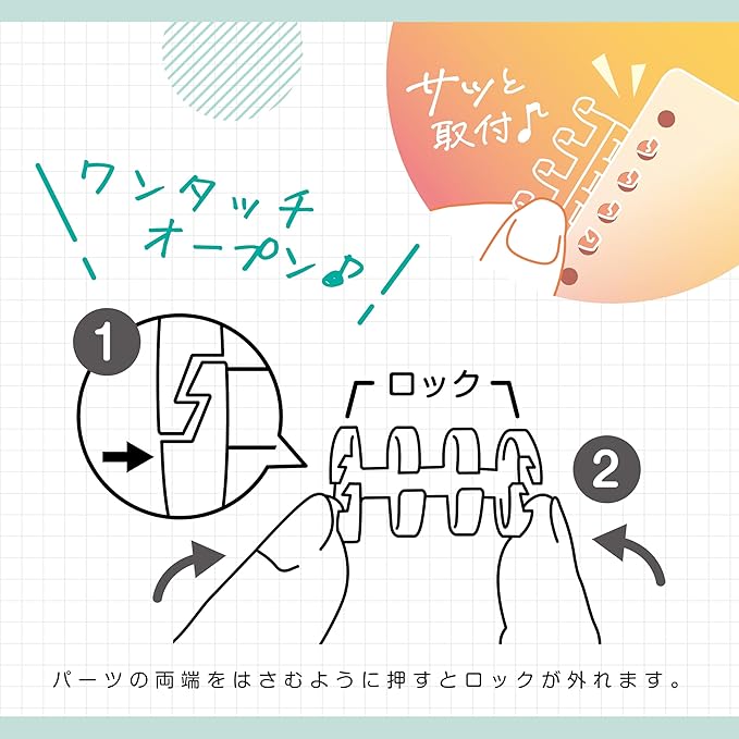 カンタン、サッと取付できる4穴式のカラフルなリング。