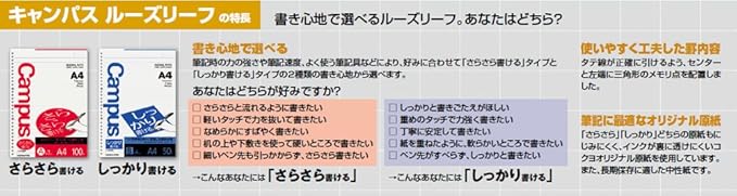 書き心地で選べる/筆記時の力の強さや筆記速度、よく使う筆記具などにより、好みに合わせて「さらさら書ける」タイプと「しっかり書ける」タイプの2種類の書き心地から選べます。本商品は「さらさら書ける」タイプ