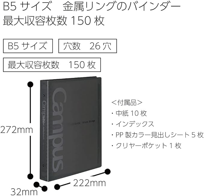コクヨ(KOKUYO) ルーズリーフ バインダー キャンパス 金属リング ワイド B5 26穴 最大150枚 黒 ル-633D