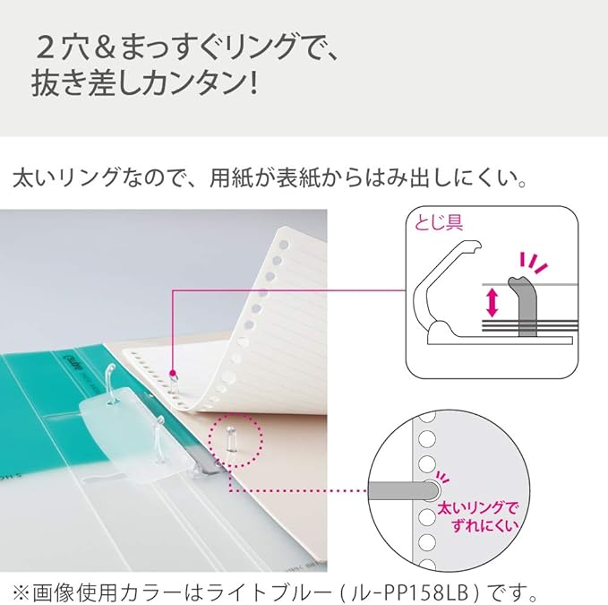 ・2穴なので、ルーズリーフの抜き差しもしやすくなっています。
