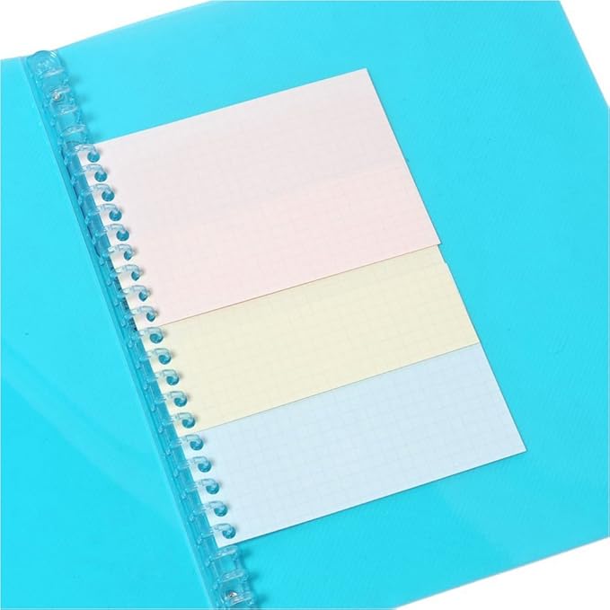 【カラー】ブルー、イエロー、ピンク 【罫線】メモリ入り6mm罫 【穴数】9穴