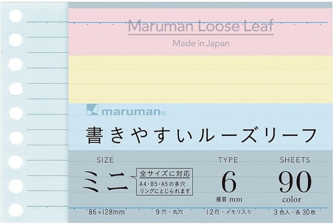 商品名:マルマン ルーズリーフ ミニ 6mm罫 B7 変形 3色アソート 90枚 L1431-99
