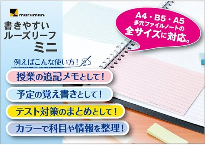 ルーズリーフミニはメモとして、ふせんの代わりとして幅広い用途で使えます。