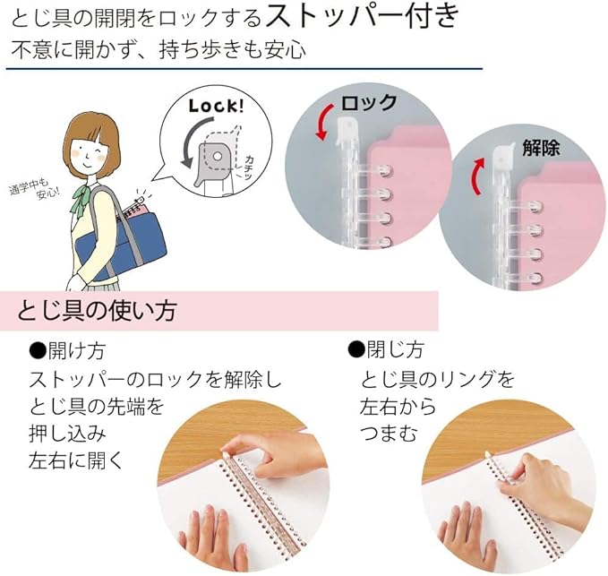 ・表紙が折り返せるスマートリングとじ具を採用しています。