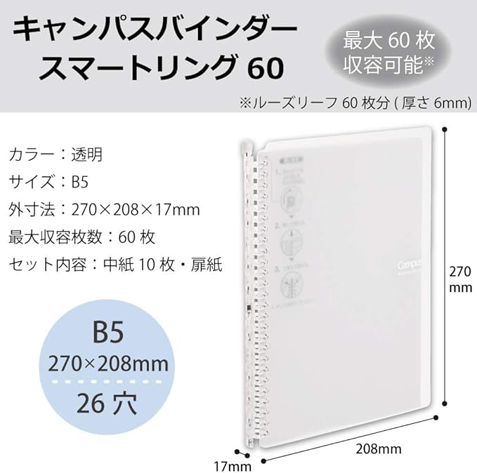 コクヨ ルーズリーフ バインダー キャンパス スマートリング B5 26穴 最大60枚 透明 ル-SP706T