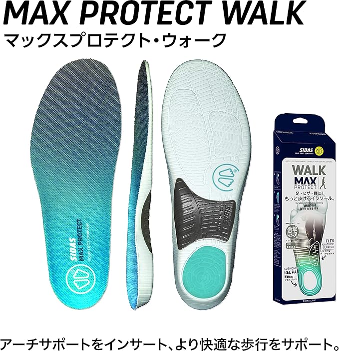 【SIDAS】シダス マックスプロテクト・ウォーク 3207661 インソール 中敷き アーチサポート 衝撃吸収 軽量 ウォーキング 日常 普段使い